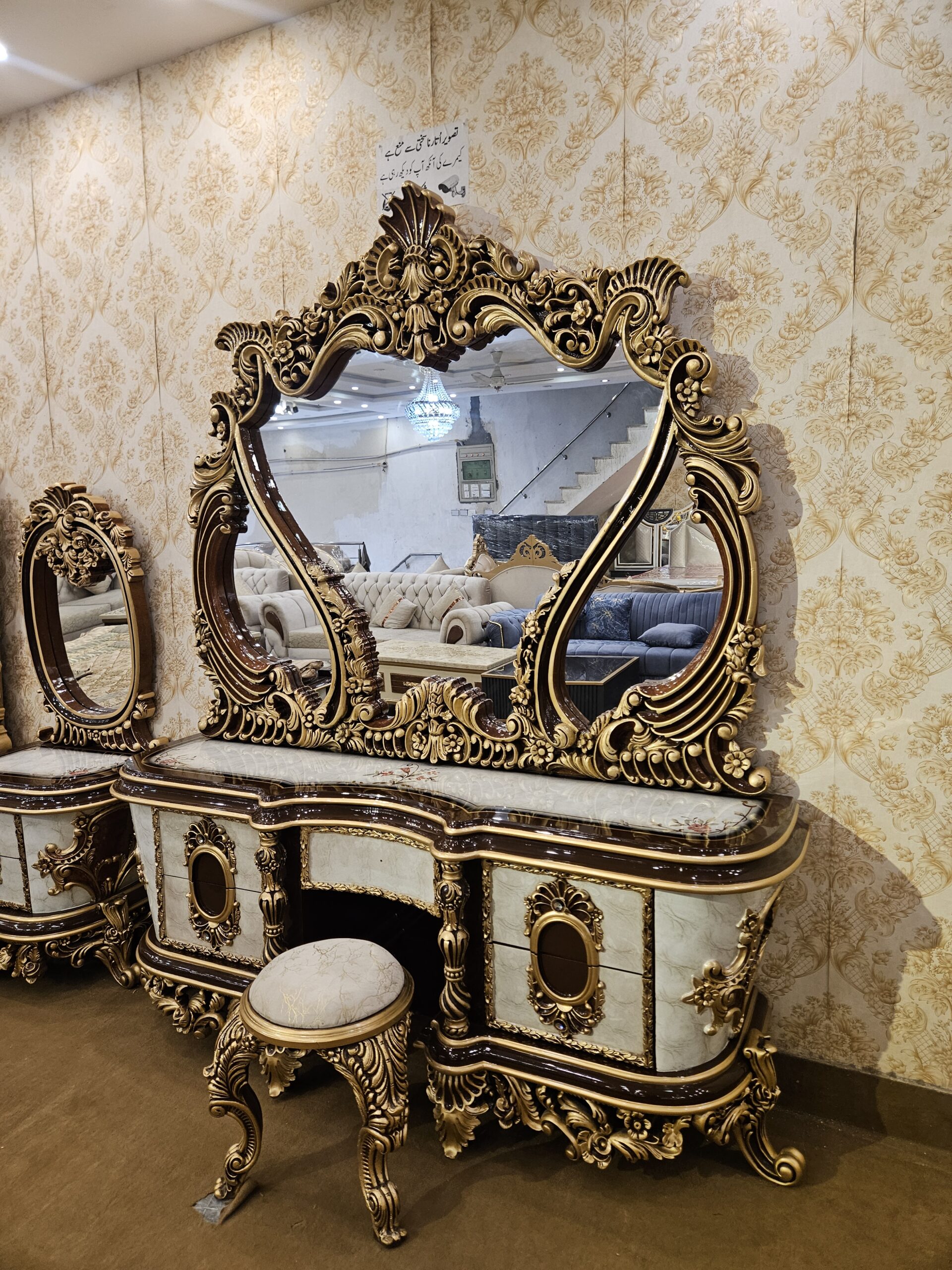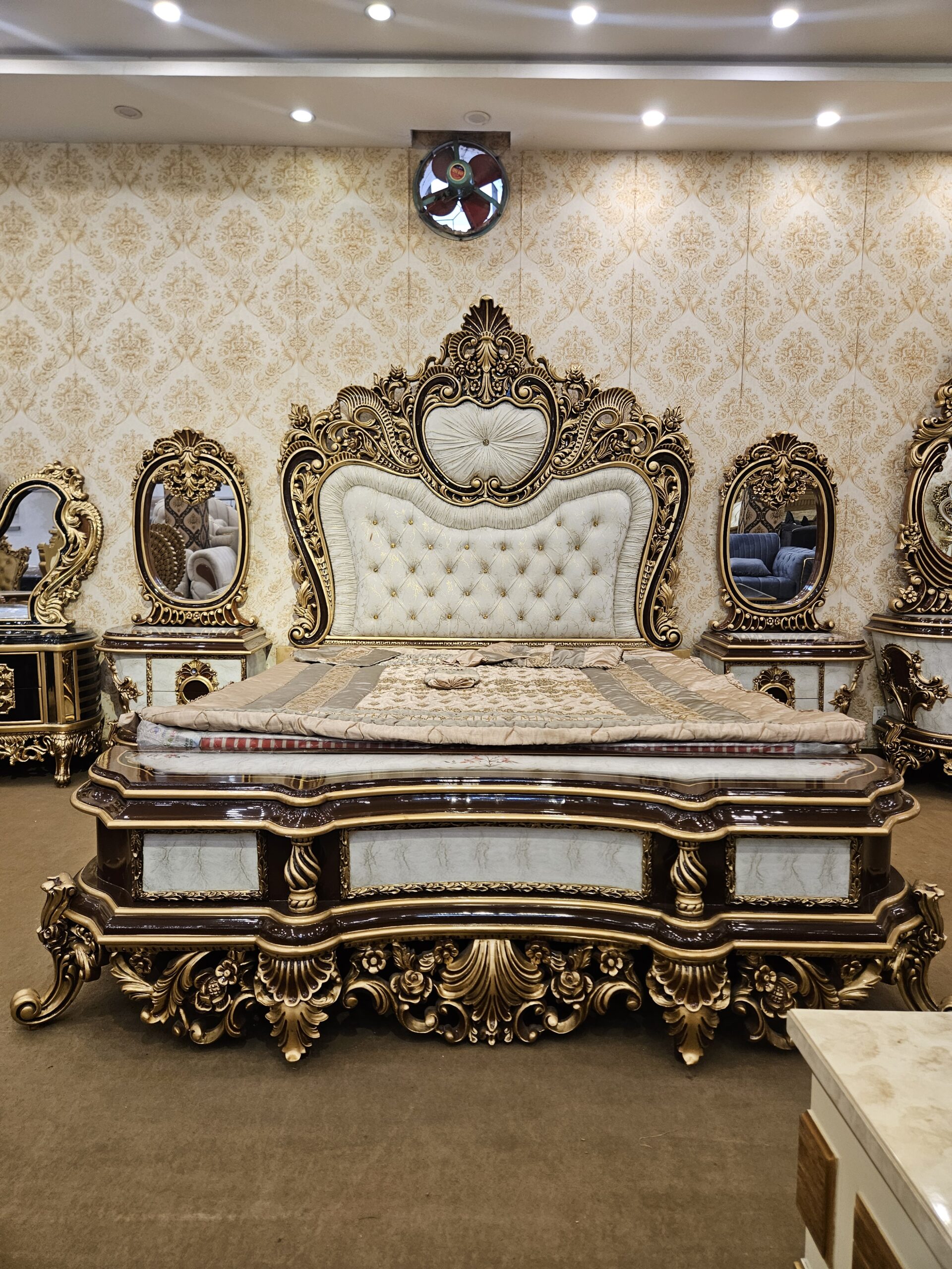 Its elegant curves, premium finishing, and rich textures make it an ideal choice for bridal rooms, master bedrooms, and luxury homes. The wide, sturdy base ensures long-lasting durability, while the soft upholstered headboard provides excellent back support for reading or relaxing.