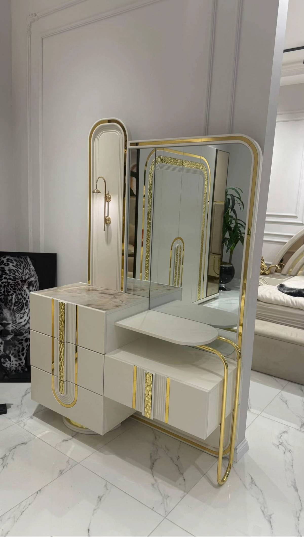 Dressing Table: Includes a spacious tabletop and mirror, offering practicality and style in one piece.