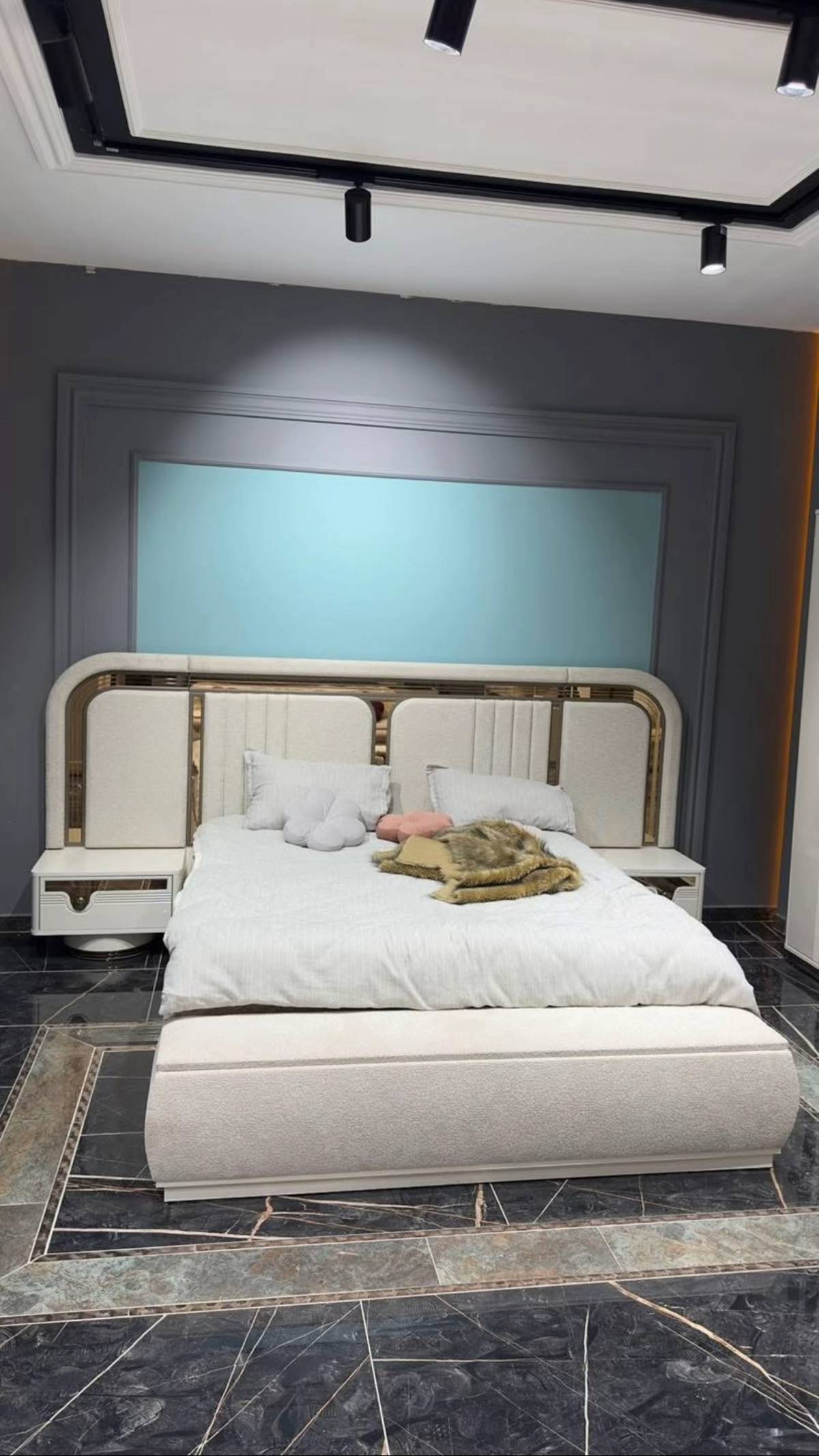 Luxury Turkish Bed Set with Puffy Headboard, 2 Side Tables, and Dressing – Elegant Design with Long-Lasting Durability