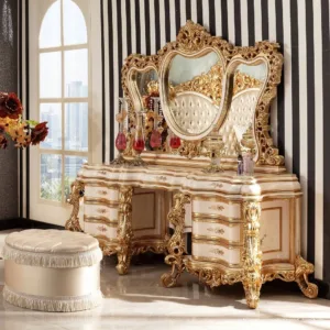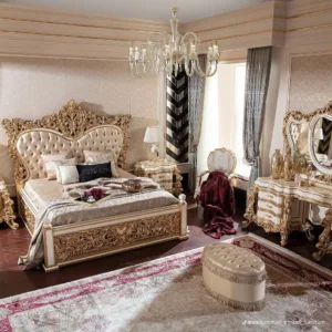 Transform your bedroom into a sophisticated sanctuary with our Turkish Bed Set, thoughtfully designed to combine style, comfort, and durability. This set includes a beautifully crafted bed, a matching side table, and a dressing table, providing a complete solution for a stylish and functional bedroom.