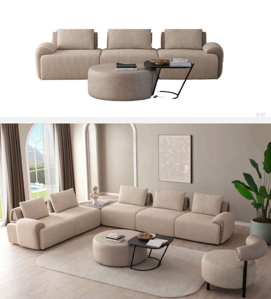Be the first to review “Modern Turkish Sectional Sofa Set – Premium Beige Textured Fabric with Designer Ottoman”